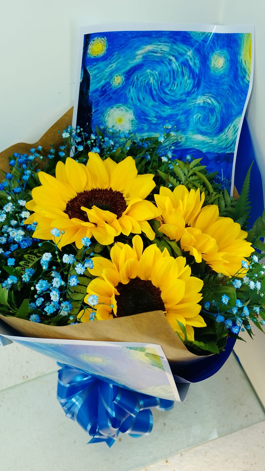 Buquê 04 – Girassóis Van Gogh 🌻💙
