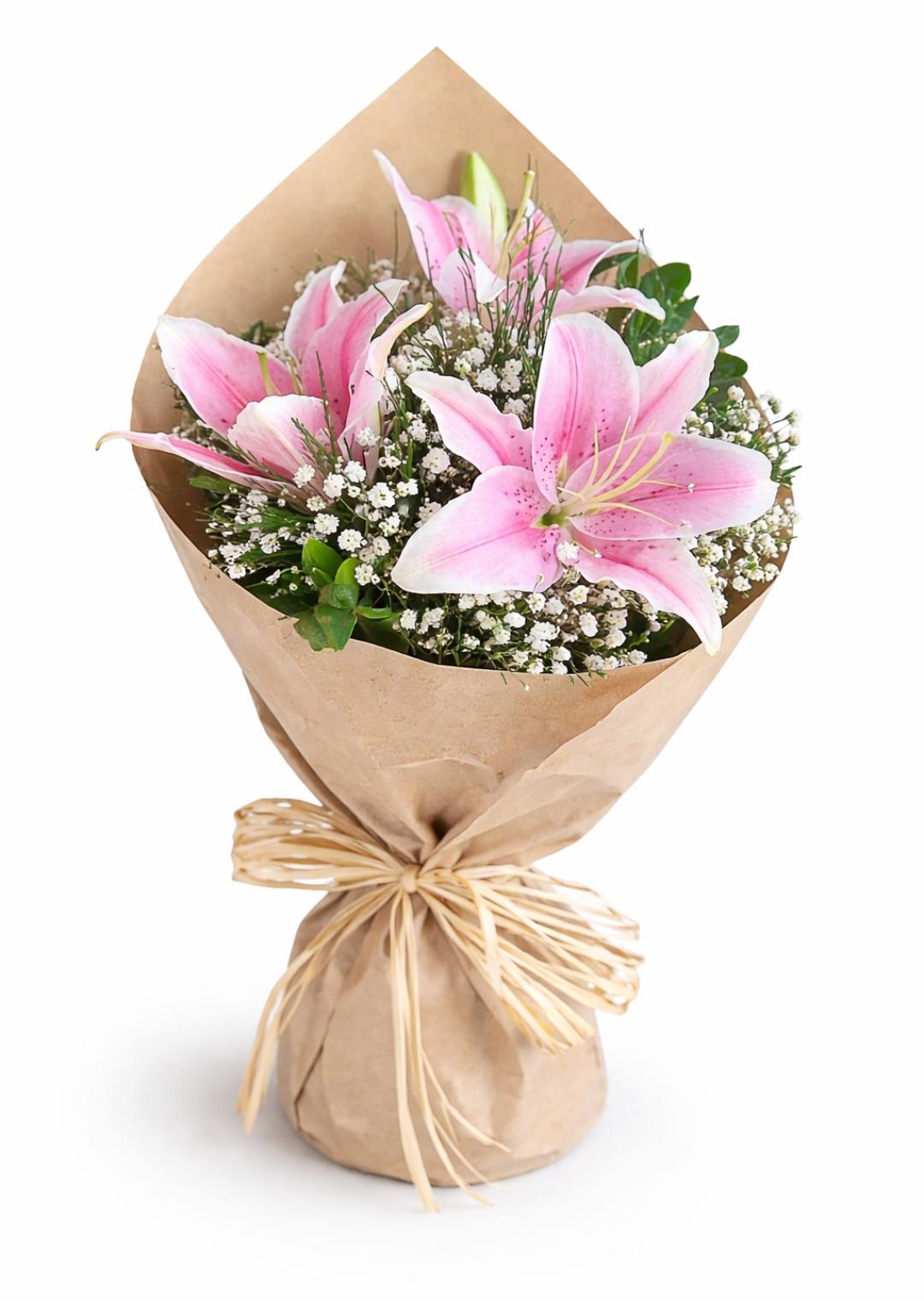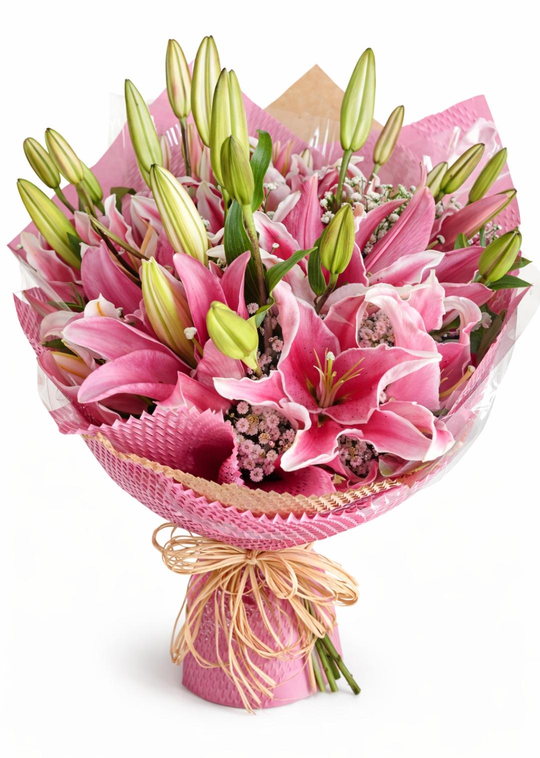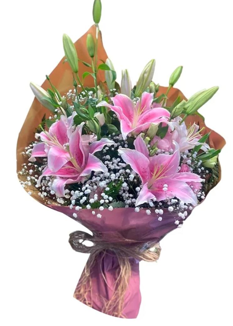 Um buquê delicado e sofisticado com lírios rosa, que encantam pelo perfume marcante e pela elegância natural.