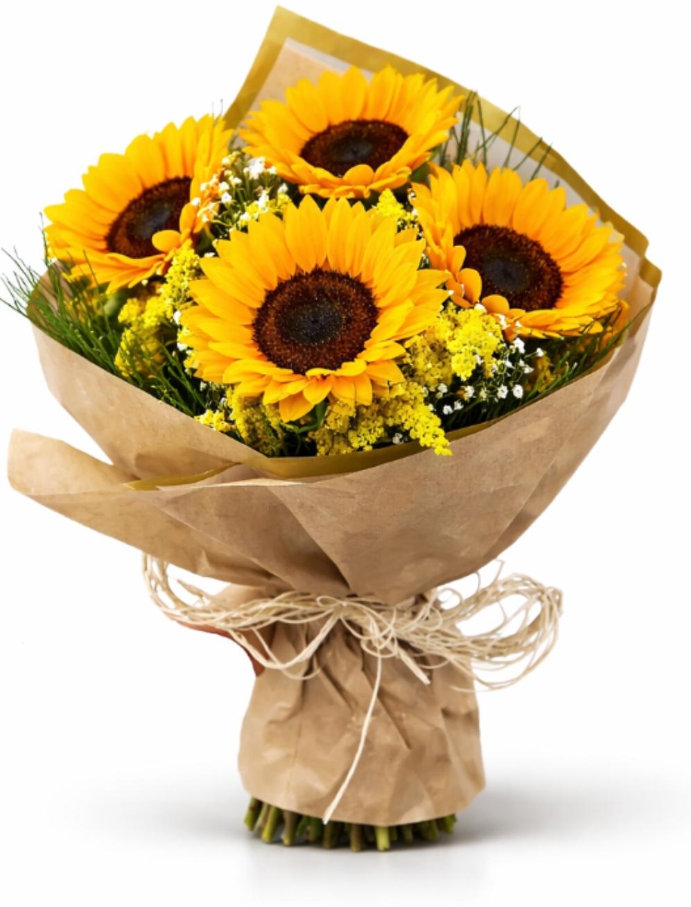 Nossos buquês de girassóis são montados com flores frescas e selecionadas, trazendo energia positiva e um toque especial em cada detalhe.