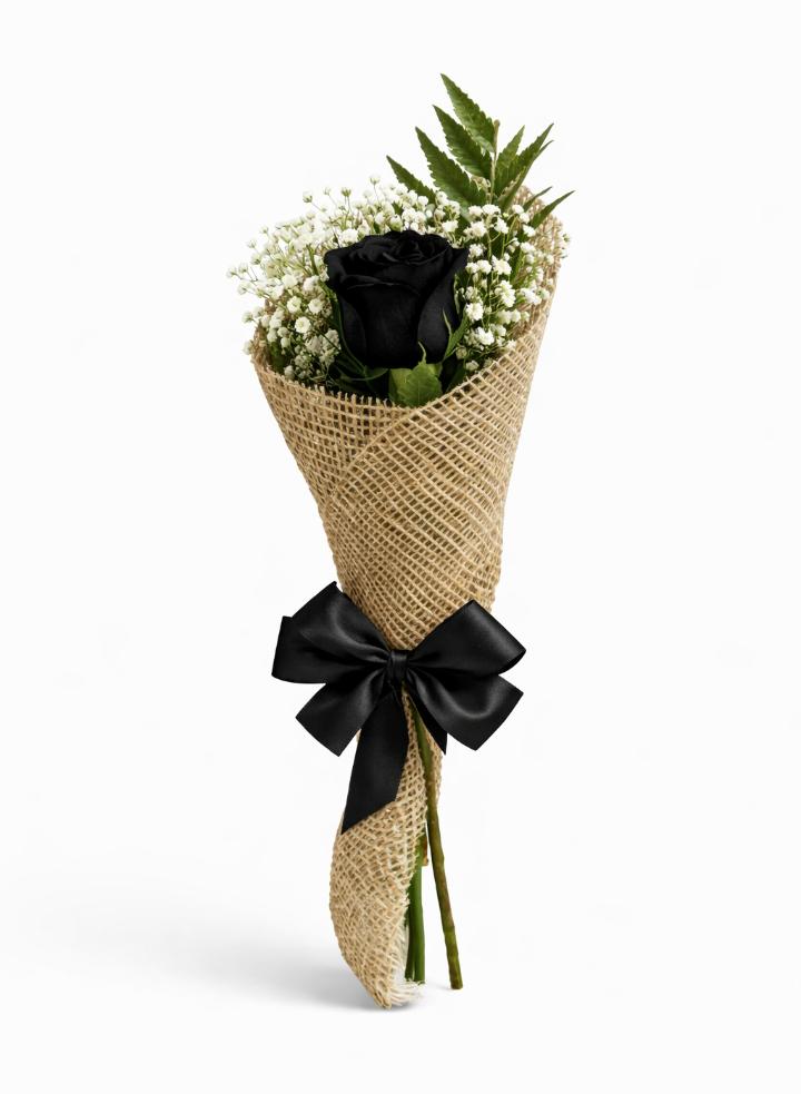 Mini Buquê – Rosa com Mosquitinho (Cor PRETA OU AZUL} OBS.ROSA TINGIDA DELICADAMENTE DE FORMA ARTESANAL.