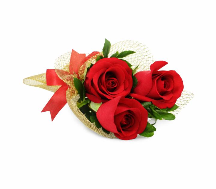 Um buquê delicado e cheio de significado, composto por 3 rosas vermelhas, símbolo do amor e da paixão, acompanhadas de folhagens e acabamento elegante.